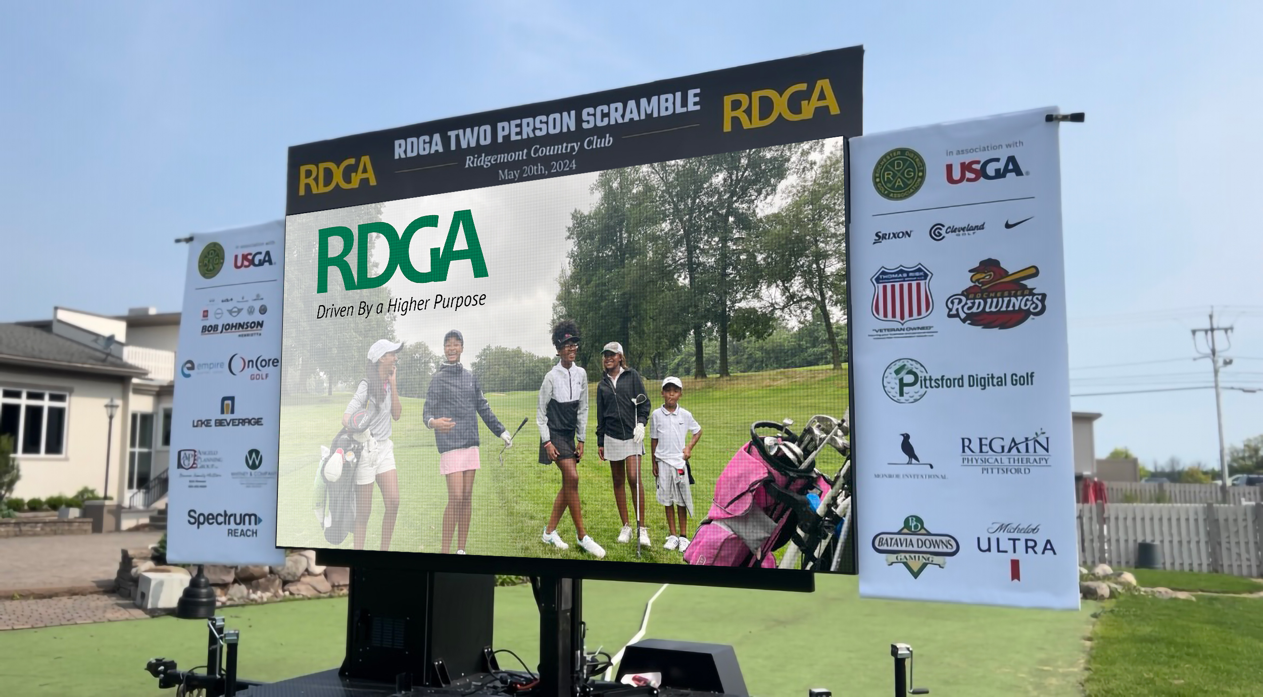 Rochester, NY – May 20, 2024 – Empire Digital Signs is excited to announce the successful completion of their first outdoor LED event rental at Ridgemont Country Club during the Rochester District Golf Association’s Two Man Scramble event. This groundbreaking project featured a state-of-the-art 12′ x 7′ LED display, significantly enhancing the event experience for participants and spectators alike.